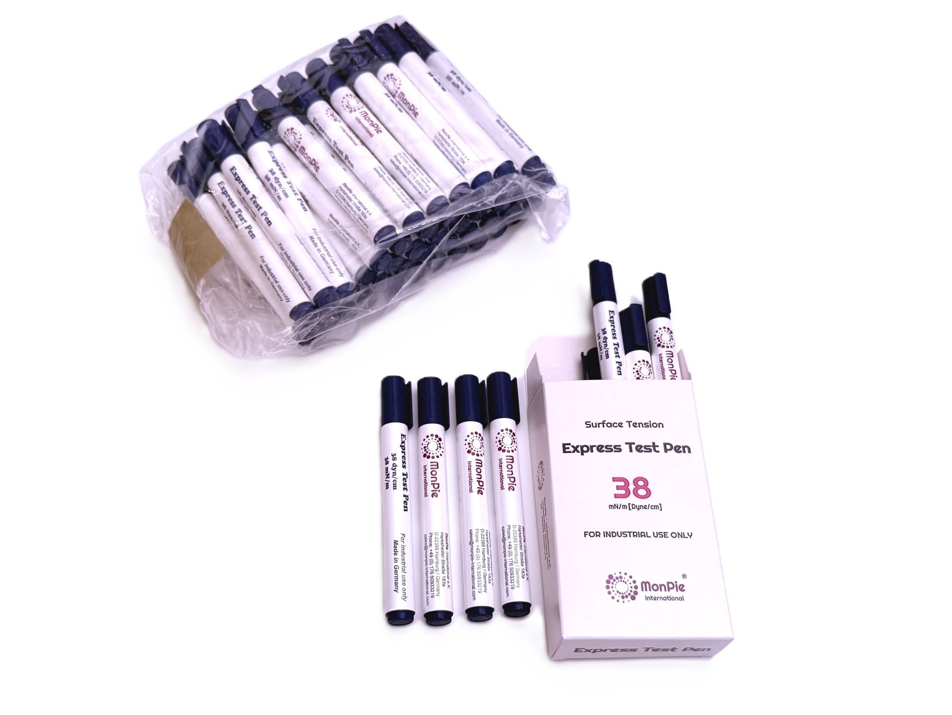 Unser Unternehmen wurde im Juni 2017 gegründet. Wir freuen uns, Ihnen den Express Test Stift 38 dyne mit der qualitativ hochwertigsten Tinte zur Messung der Oberflächenspannung nach der Vorbehandlung von Kunststoffen [PP, PE etc.] anbieten zu können. Er ist geeignet für Corona, Plasma, Primer und Beflammung.